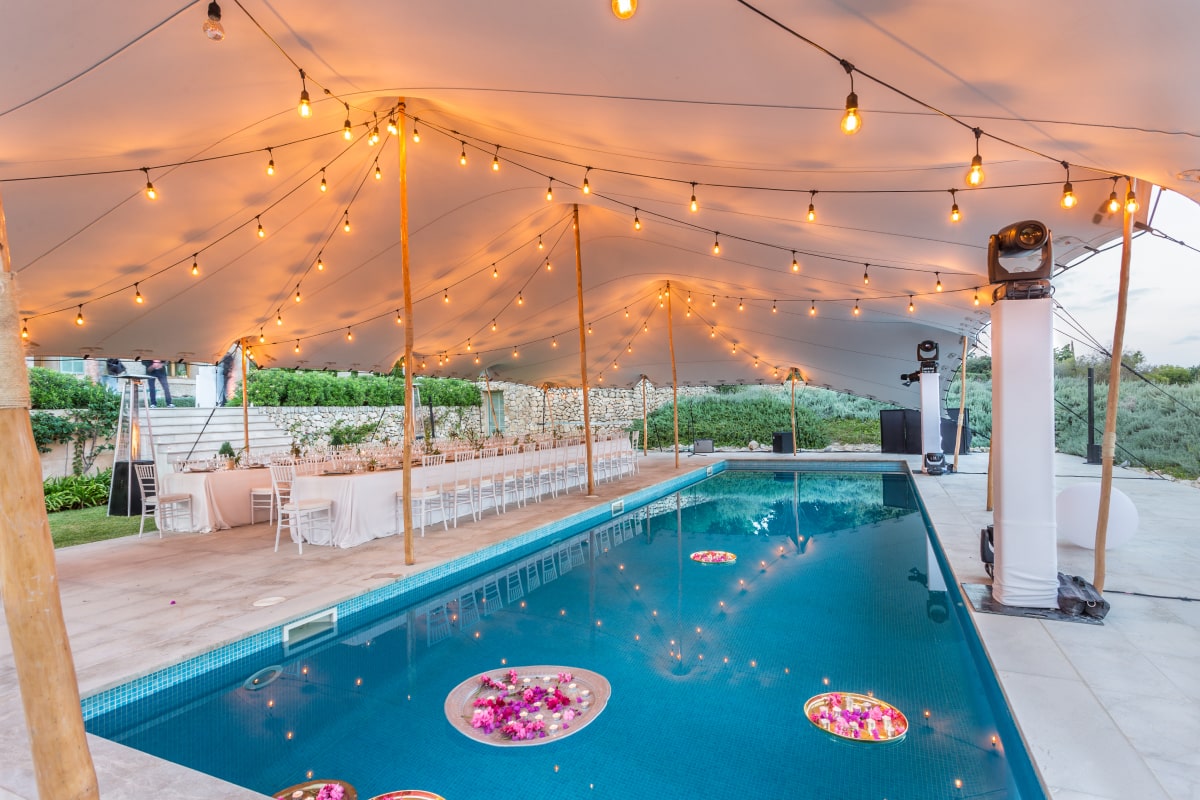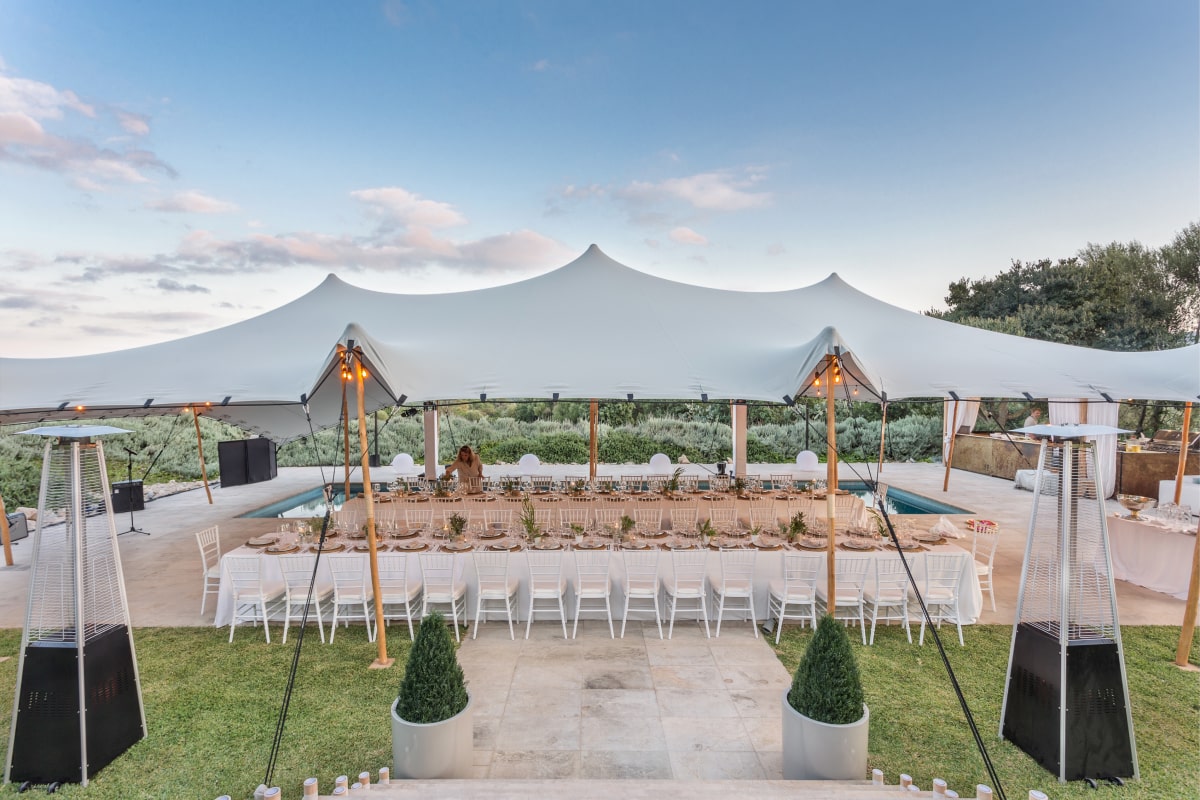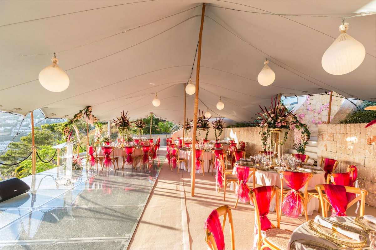 32′ x 32′ ( 10m x 10m ) Waterproof Stretch Tent also known as Bedouin stretch tent. Aluminum Poles, Rubber Domes, Special Fittings Only Manufactured By Our Company. Stretch tents are 100% waterproof tents, with many being flame-retardant and anti-fungal. Royal Tent USA stretch tent fabric have been designed perfectly with unique features.